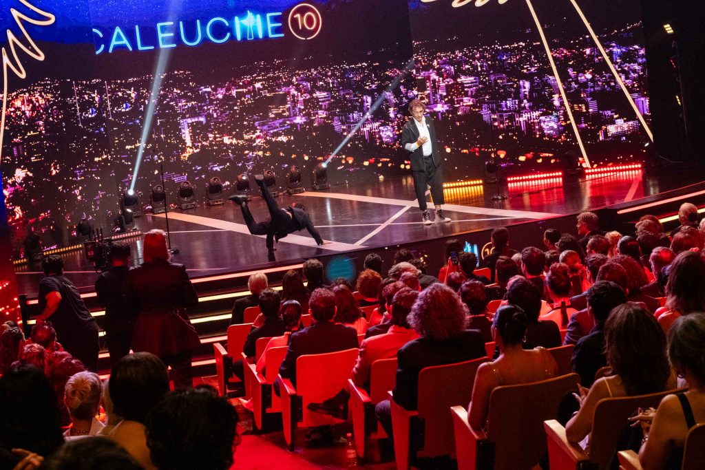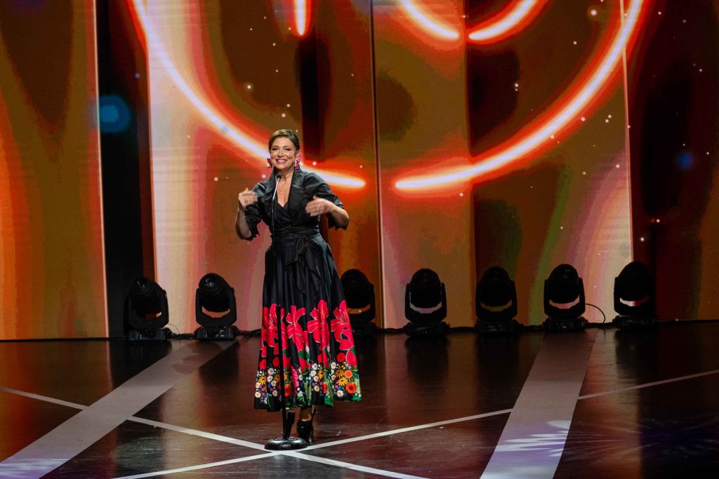 La ceremonia comenzó con una obertura especialmente preparada para los 10 años de Premios Caleuche, con Francisca Walker, Carmen Gloria Bresky, Josefina Montané, Francisco Dañobeitía, Juan Carlos Maldonado y “Koke” Santa Ana, en un número que puso el tono festivo del aniversario. En el monólogo de bienvenida, Javiera Contador recordó —con humor— el camino recorrido hasta esta décima edición y el crecimiento del evento.